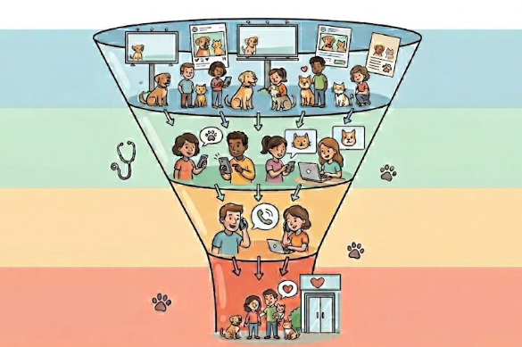 그래서 오늘은 이 어려운 마케팅 용어들을 다 치워두고, 가장 직관적이고 쉬운 우리말 접근법으로 동물병원 마케팅의 흐름을 잡아보는 이야기를 해보려 합니다.